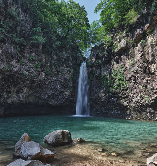 지장봉(877m)이 원류인 이 폭포는 한탄강 서쪽에 깊숙이 자리해 있다.